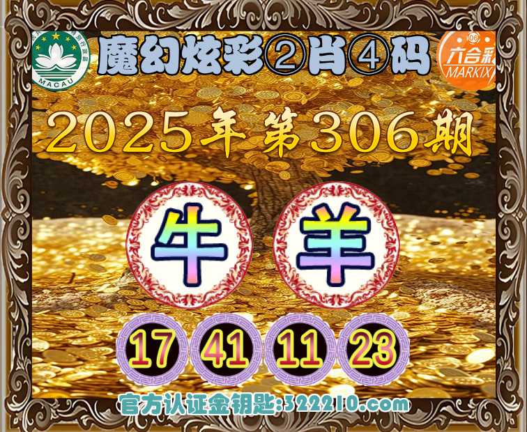 306期:『魔幻炫彩』 🎉②肖④码🎉【羊】【17.41.11.23】开:牛17