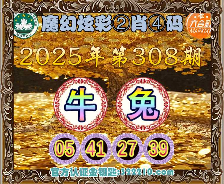308期:『魔幻炫彩』 🎉②肖④码🎉【牛】【05.41.27.39】开:兔39