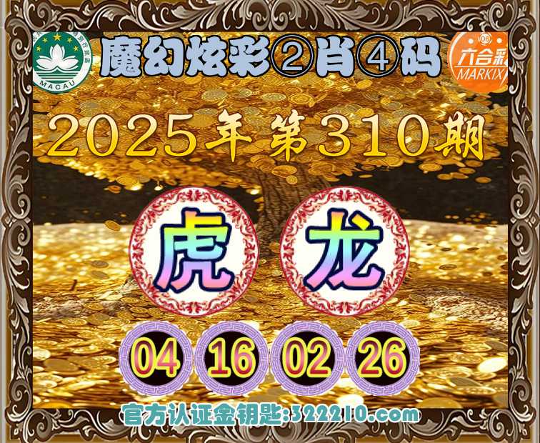 310期:『魔幻炫彩』 🎉②肖④码🎉【龙】【04.16.02.26】开:虎16