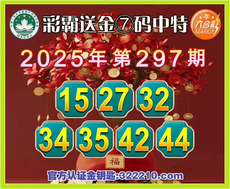 297期:【彩霸送金】 ☘️⑦码中特☘️【15.27.32.34.35.42.44】开:44