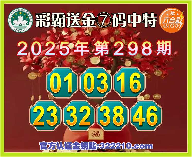 298期:【彩霸送金】 ☘️⑦码中特☘️【01.03.16.23.32.38.46】开:23