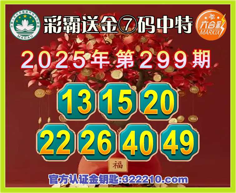 299期:【彩霸送金】 ☘️⑦码中特☘️【13.15.20.22.26.40.49】开:49