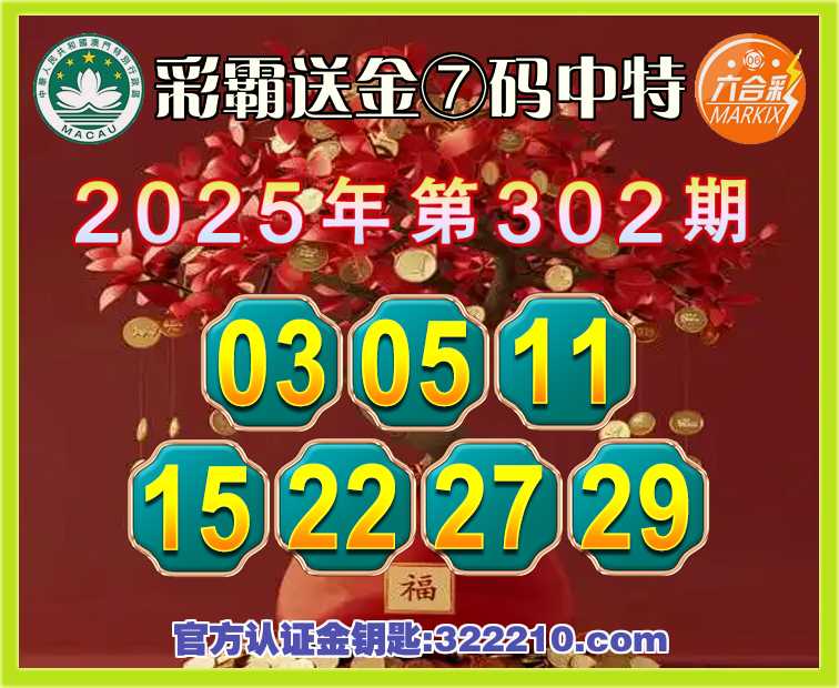 302期:【彩霸送金】 ☘️⑦码中特☘️【03.05.11.15.22.27.29】开:22