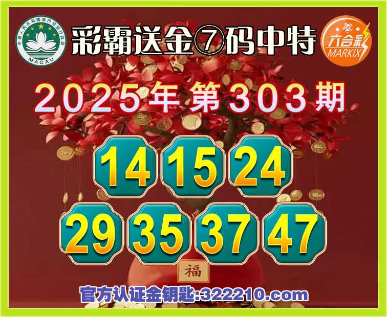 303期:【彩霸送金】 ☘️⑦码中特☘️【14.15.24.29.35.37.47】开:15