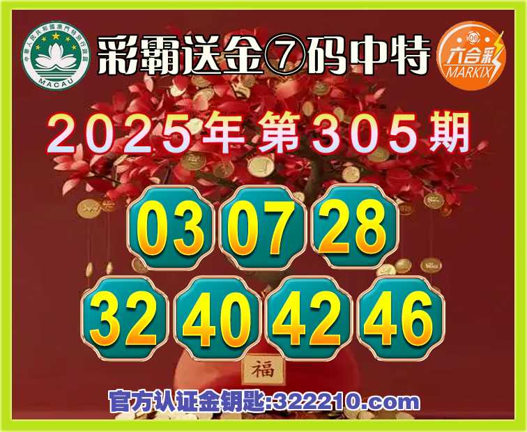 305期:【彩霸送金】 ☘️⑦码中特☘️【03.07.28.32.40.42.46】开:42