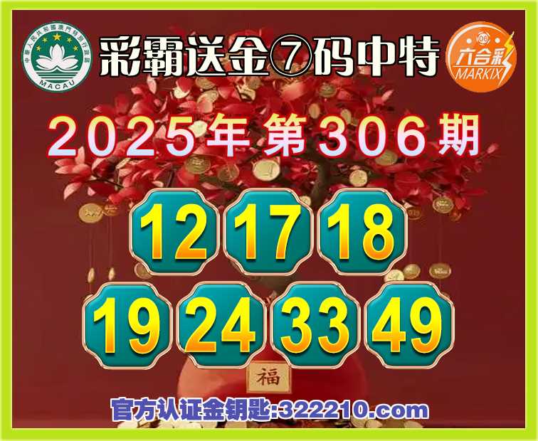 306期:【彩霸送金】 ☘️⑦码中特☘️【12.17.18.19.24.33.49】开:17