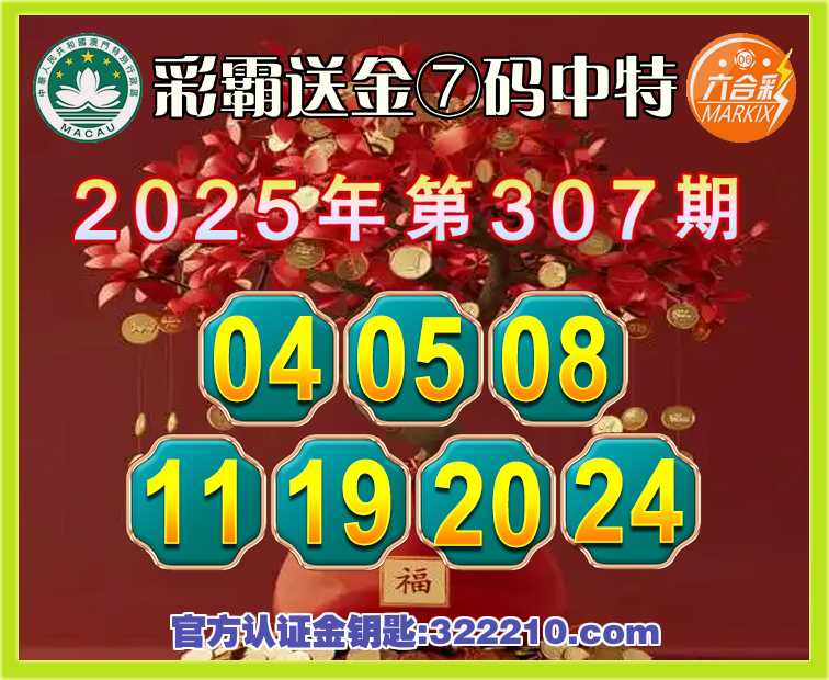 307期:【彩霸送金】 ☘️⑦码中特☘️【04.05.08.11.19.20.24】开:20