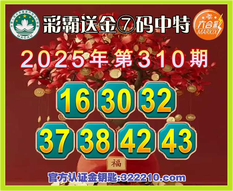310期:【彩霸送金】 ☘️⑦码中特☘️【16.30.32.37.38.42.43】开:16