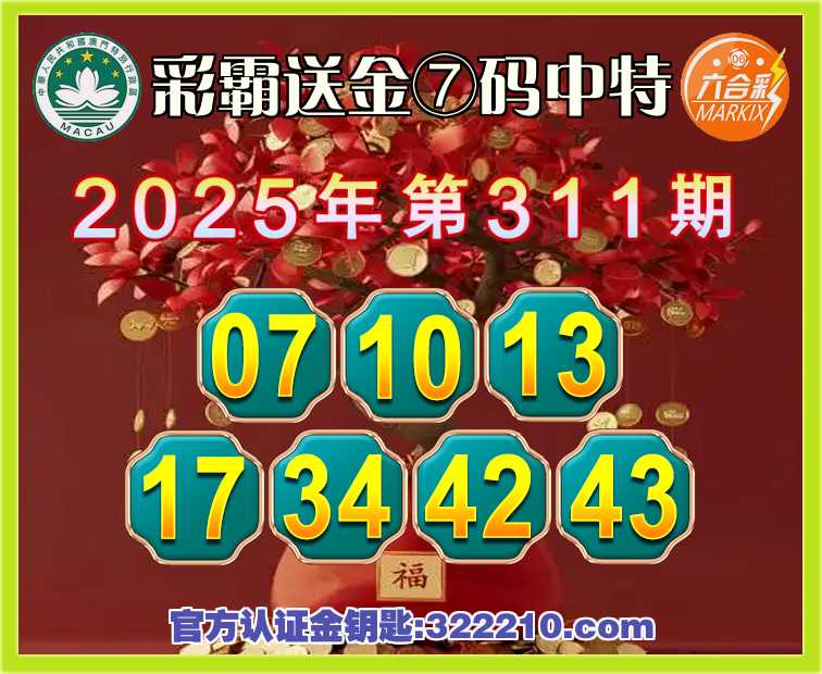 311期:【彩霸送金】 ☘️⑦码中特☘️【07.10.13.17.34.42.43】开:37