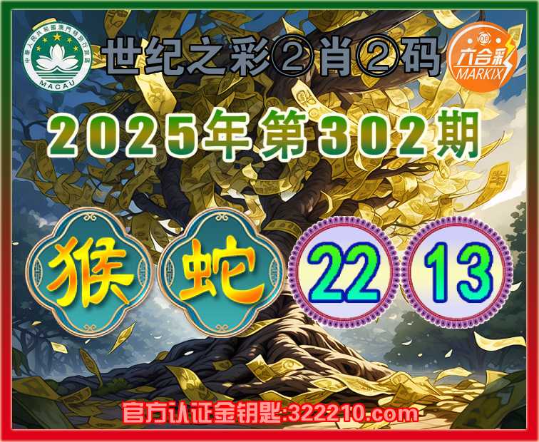 302期:🥽『世纪之彩』🥽②肖②码🥽【蛇】【22.13】开:猴22