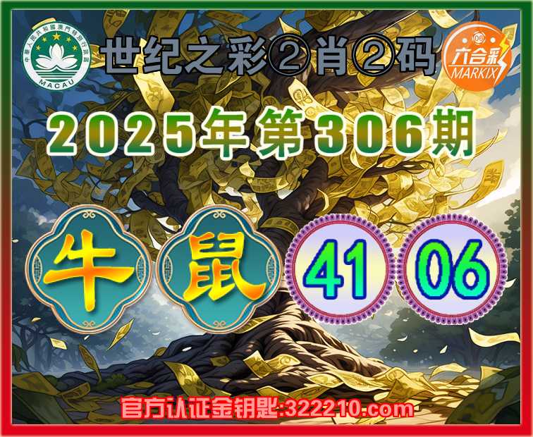 306期:🥽『世纪之彩』🥽②肖②码🥽【鼠】【41.06】开:牛17