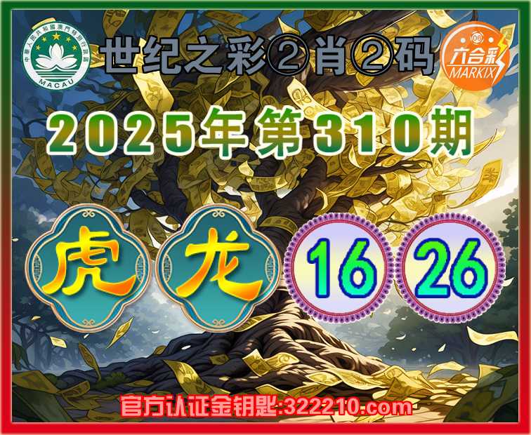 310期:🥽『世纪之彩』🥽②肖②码🥽【龙】【16.26】开:虎16