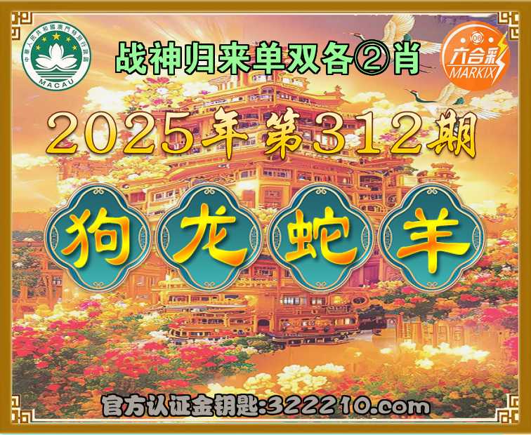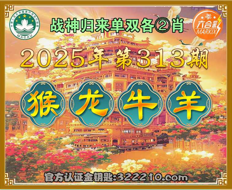 主题: 315期:金钥匙高手【战神归来🔥单双各②肖】正版澳彩