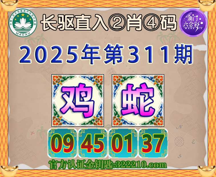 311期:〖长驱直入〗 🚡②肖④码🚡【鸡】【09.45.01.37】开:蛇37