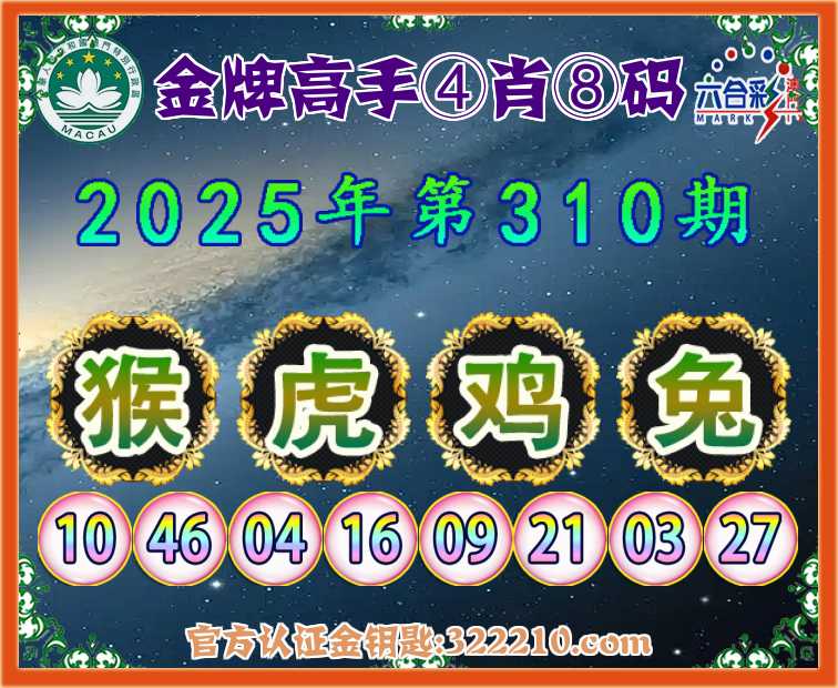 310期:『金牌高手』 📸④肖⑧码📸【猴鸡兔】开:虎16