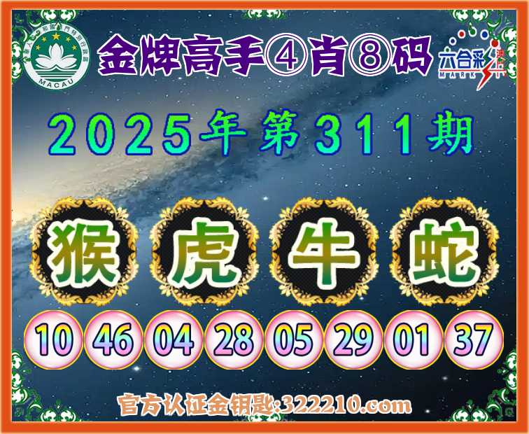 311期:『金牌高手』 📸④肖⑧码📸【猴虎牛】开:蛇37