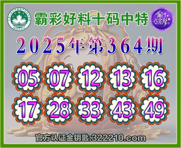 364期:『霸彩好料』 🚲十码中特🚲开:12