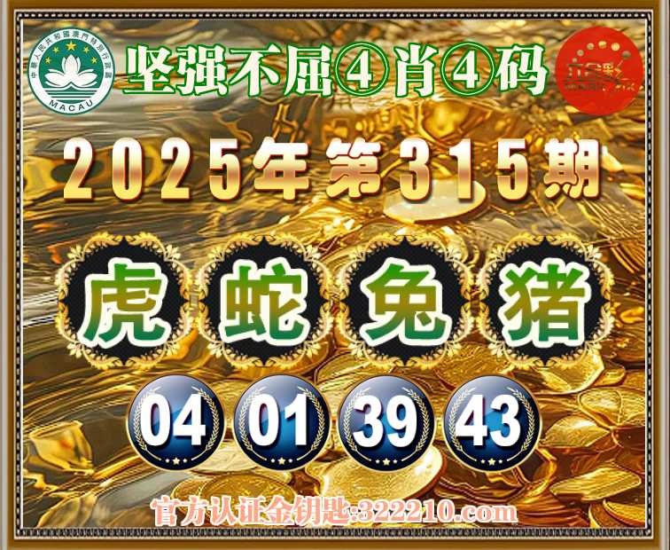 315期:《坚强不屈》 ♦️④肖④码♦️【蛇兔猪】【04.01.39.43】开:虎04