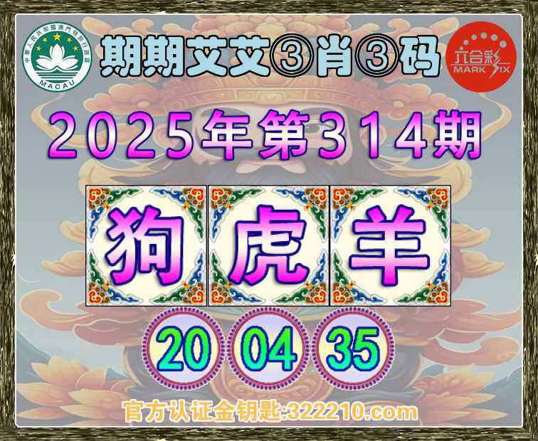 314期:〖期期艾艾〗 🏇③肖③码🏇【狗虎】【20.04.35】开:羊23