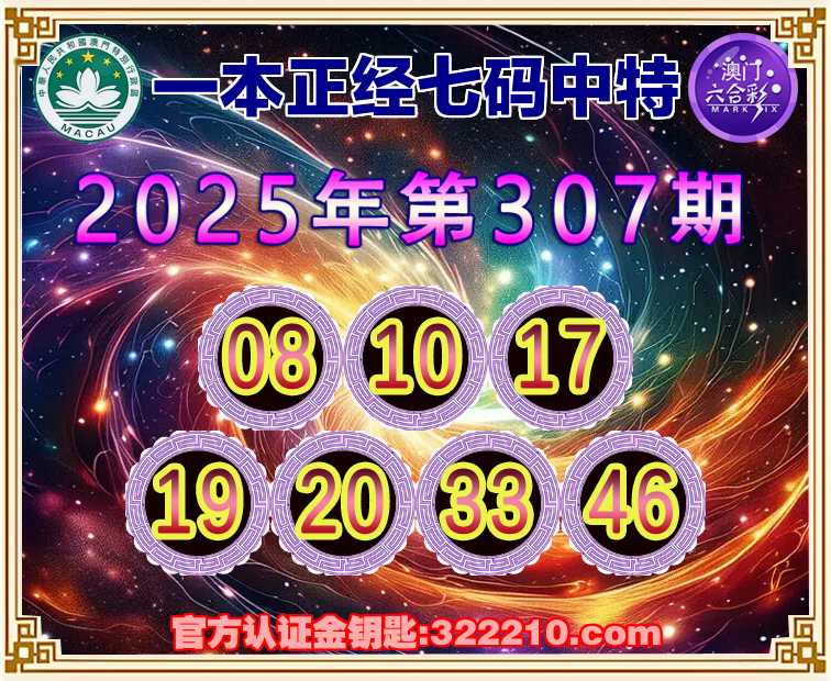 307期: 🏄‍♀️『一本正经』 🏄‍♀️七码中特🏄‍♀️【08.10.17.19.20.33.46】开:20