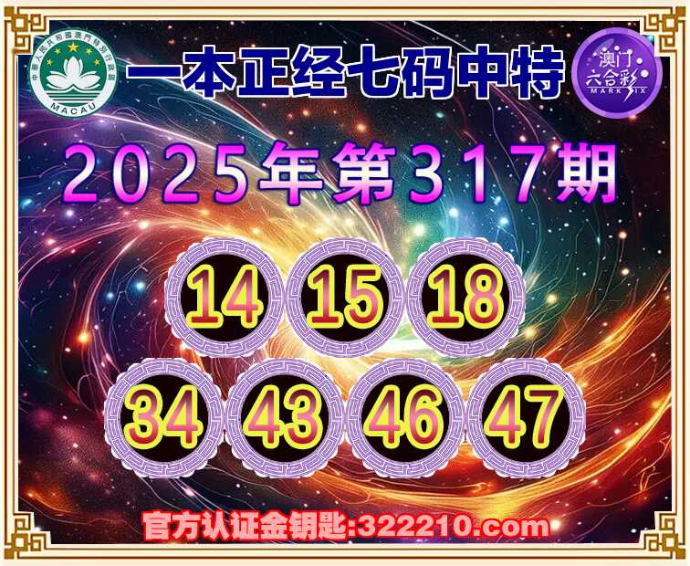 317期: 🏄‍♀️『一本正经』 🏄‍♀️七码中特🏄‍♀️【14.15.18.34.43.46.47】开:18