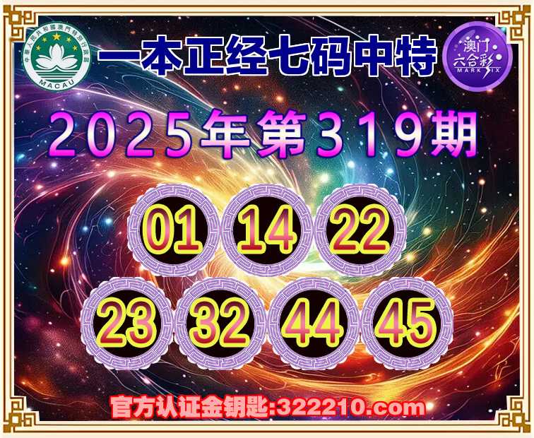319期: 🏄‍♀️『一本正经』 🏄‍♀️七码中特🏄‍♀️【01.14.22.23.32.44.45】开:45