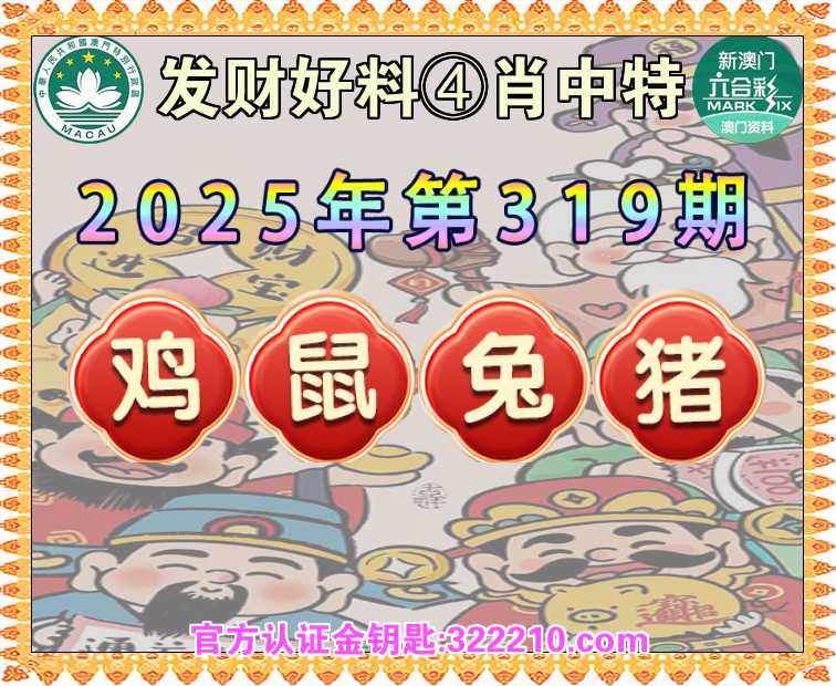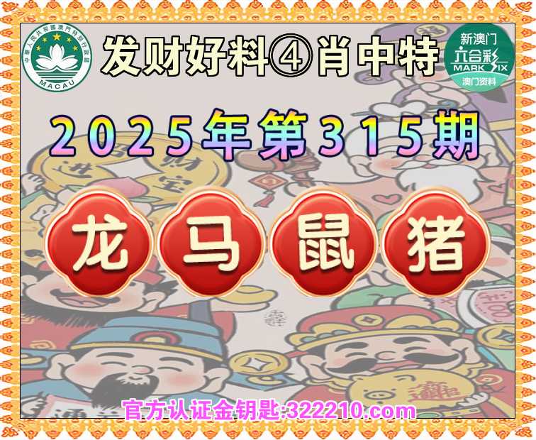 主题: 325期:金钥匙高手【发财好料🔥④肖中特】正版澳彩
