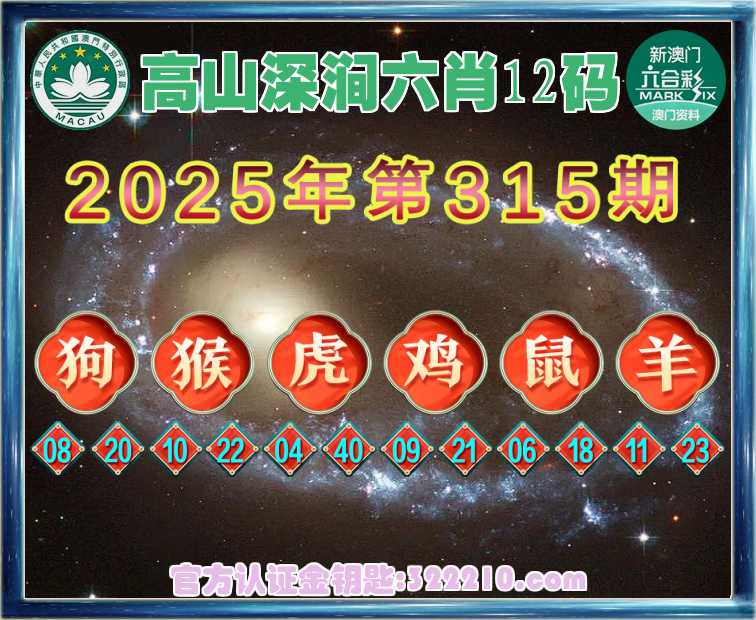 主题: 325期:金钥匙高手【高山深涧🔥六肖12码】正版澳彩