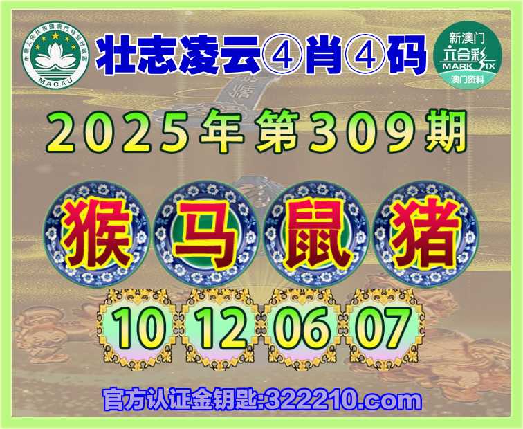 主题: 325期:金钥匙高手【壮志凌云🔥④肖④码】正版澳彩