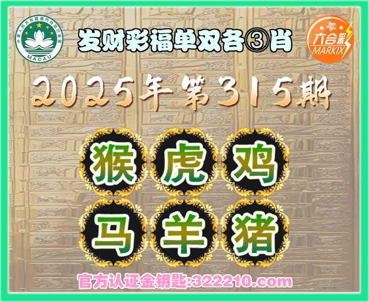 315期:【发财彩福】 🚲单双各③肖🚲【猴..鸡.马.羊.猪】开:虎04