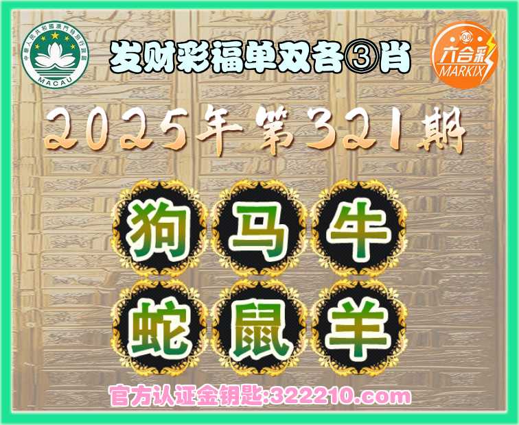 321期:【发财彩福】 🚲单双各③肖🚲【狗.马.牛.蛇.鼠.】开:羊23