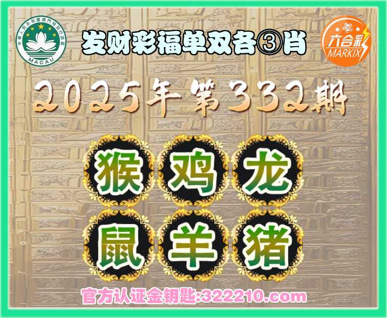332期:【发财彩福】 🚲单双各③肖🚲【猴.鸡..鼠.羊.猪】开:龙26