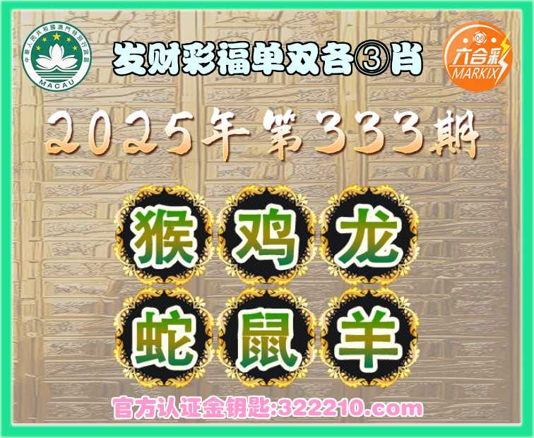 主题: 333期:金钥匙高手【发财彩福🔥单双各③肖】正版澳彩