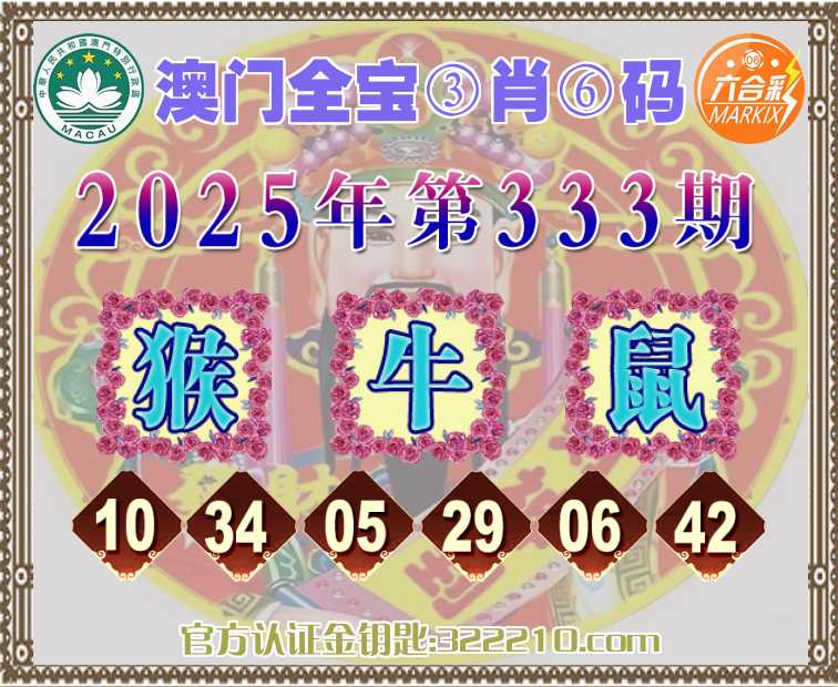 主题: 335期:金钥匙高手【澳门全宝🔥③肖⑥码】正版澳彩