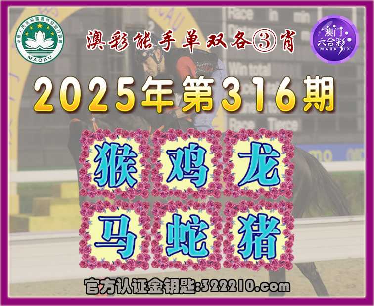 316期:『澳彩能手』 👘单双各③肖👘【猴.鸡.龙..蛇.猪】开:马24