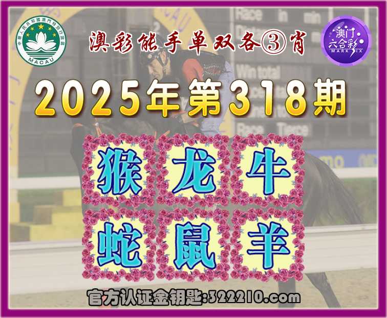318期:『澳彩能手』 👘单双各③肖👘【猴.龙.牛.蛇..羊】开:鼠06