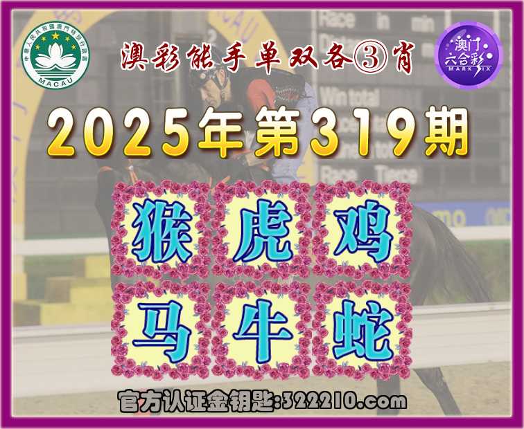 319期:『澳彩能手』 👘单双各③肖👘【猴.虎..马.牛.蛇】开:鸡45