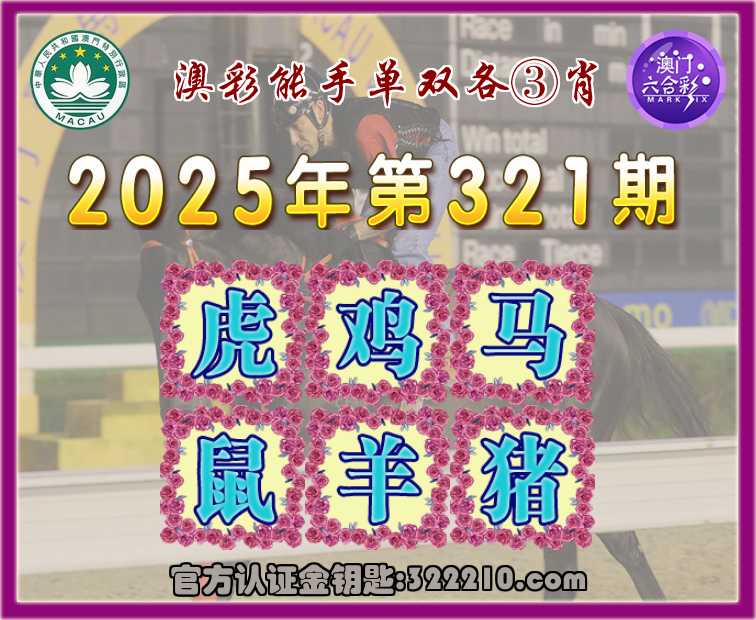321期:『澳彩能手』 👘单双各③肖👘【虎.鸡.马.鼠..猪】开:羊23