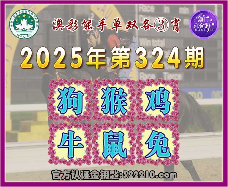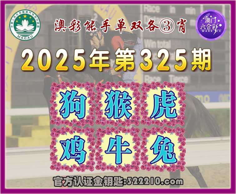 325期:『澳彩能手』 👘单双各③肖👘【狗.猴..鸡.牛.兔】开:虎04