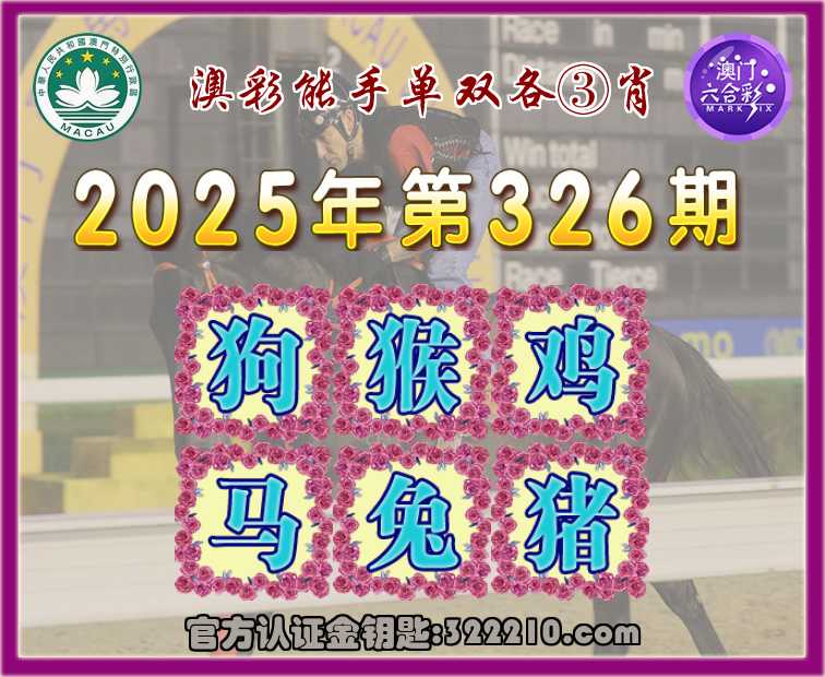 326期:『澳彩能手』 👘单双各③肖👘【狗.猴.鸡.马.兔.】开:猪19