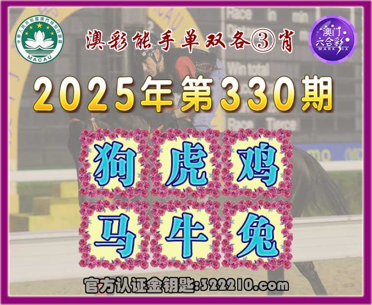 330期:『澳彩能手』 👘单双各③肖👘【狗.虎.鸡..牛.兔】开:马36
