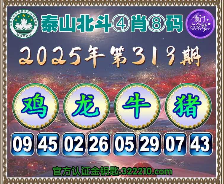 319期:【泰山北斗】 🏇④肖⑧码🏇【龙牛猪】开:鸡45