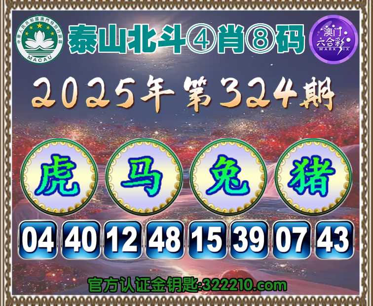 324期:【泰山北斗】 🏇④肖⑧码🏇【虎马猪】开:兔15