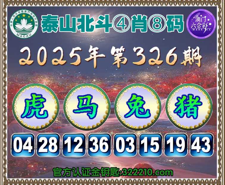 326期:【泰山北斗】 🏇④肖⑧码🏇【虎马兔】开:猪19