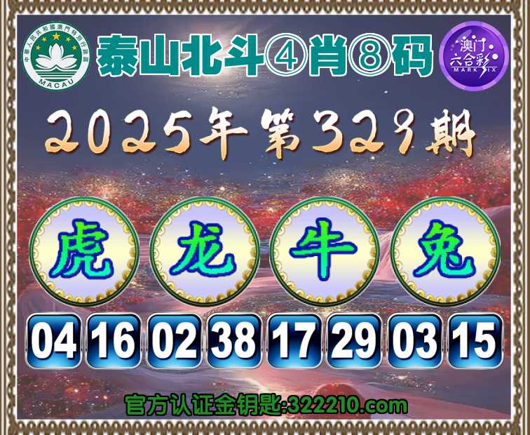 329期:【泰山北斗】 🏇④肖⑧码🏇【虎龙兔】开:牛17