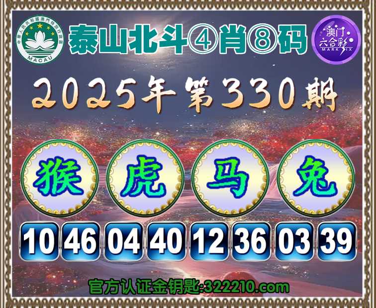 330期:【泰山北斗】 🏇④肖⑧码🏇【猴虎兔】开:马36