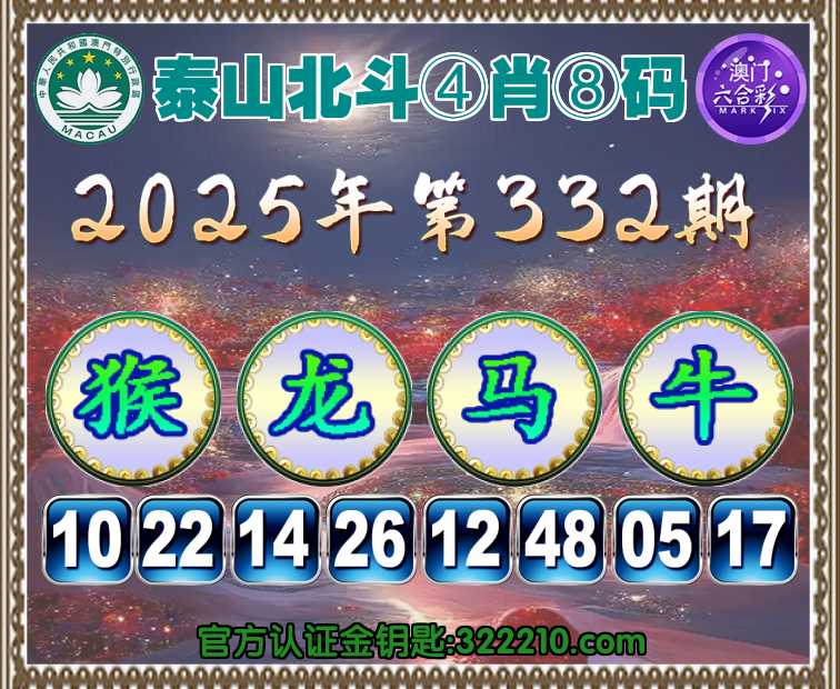 332期:【泰山北斗】 🏇④肖⑧码🏇【猴马牛】开:龙26