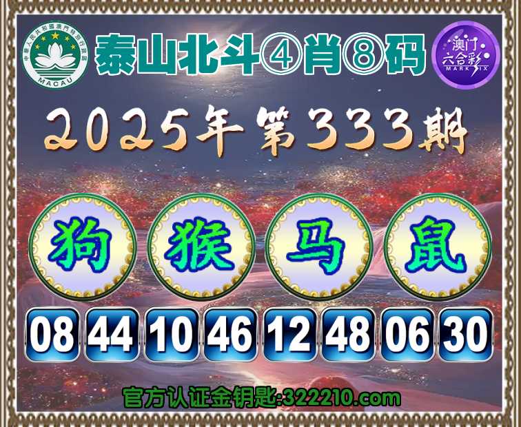 333期:【泰山北斗】 🏇④肖⑧码🏇【狗猴马】开:鼠06
