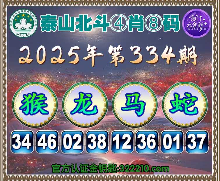 334期:【泰山北斗】 🏇④肖⑧码🏇【龙马蛇】开:猴46