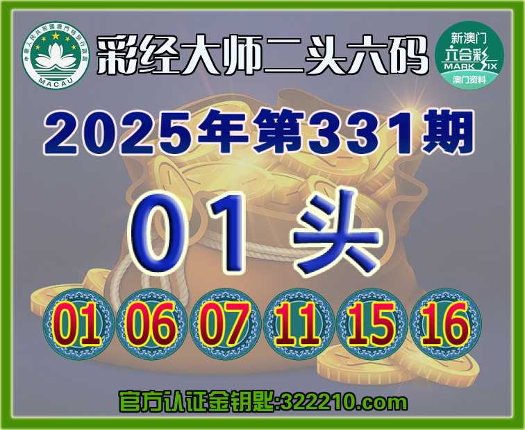 主题: 337期:金钥匙高手【彩经大师🔥二头六码】正版澳彩